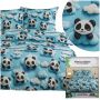 Pościel misie 3 częściowa 160x200 + 2 poszewki dla dzieci niebieska Pandy