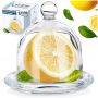 Pojemnik na cytrynę z kloszem. Wykonany z przezroczystego szkła. Dzięki niemu przekrojona cytryna zachowa swoją świeżość oraz aromat.