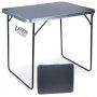 Kempingowy, składany stół będzie przydatny podczas wyjazdów lub na działce. Stolik po złożeniu zajmuje mało miejsca. Odporny na warunki atmosferyczne. Usadowiony na metalowych nogach.