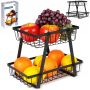 - Dwupoziomowy dla lepszej organizacji - Koszyk posiada dwa poziomy, dzięki czemu ma dużą pojemność. Dodatkowo, posiada otwarte ścianki, które zapewniają odpowiednią cyrkulację powietrza. Dzięki niemu owoce lub warzywa będą pięknie wyeksponowane, a także dłużej zachowają świeżość.