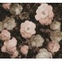 TAPETA 37650-4 NAMALOWANE KWIATY, RÓŻE RETRO NA CIEMNYM TLE, liście FLIZ