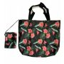 TORBA PORTFEL MAX SKŁADANA EKO ZAKUPY Czarna Zielone Liście Róż Kwiat