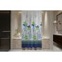 GRUBA ZASŁONA PRYSZNICOWA POLIESTROWA 180cm x 180 NIEBIESKIE PASY Z LIŚĆMI